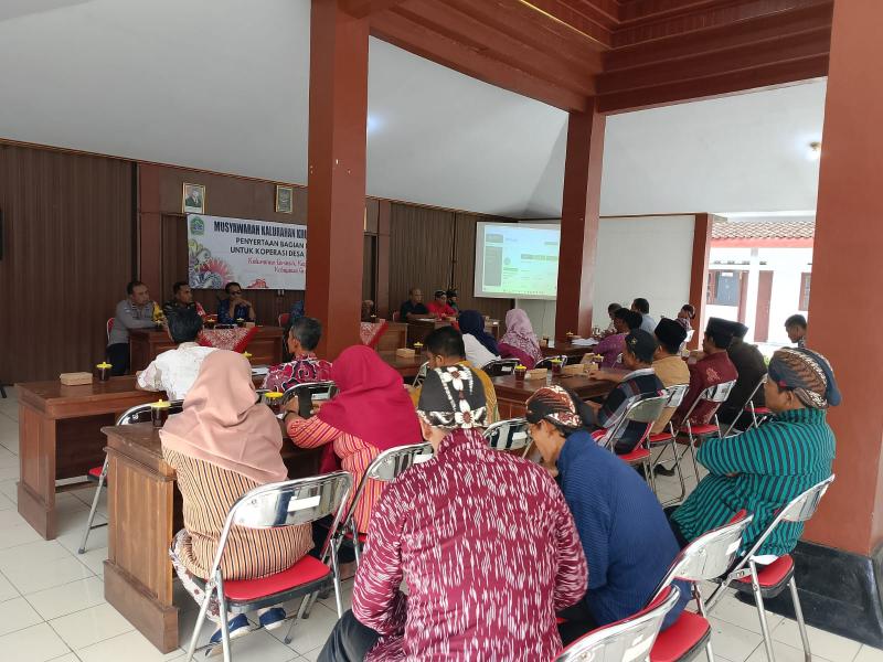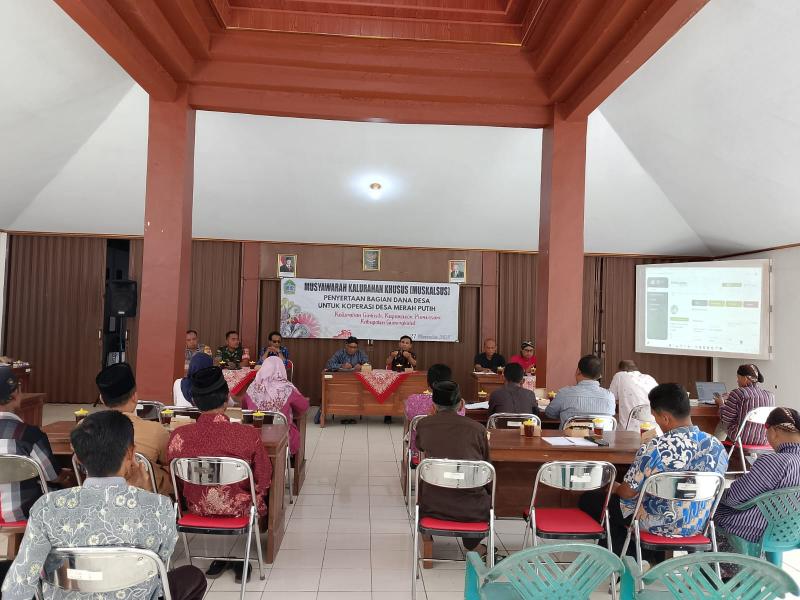 (GIRIASIH-SIDASAMEKTA), Badan Permusyawaratan Kalurahan (Bamuskal) Giriasih menyelenggarakan Musyawarah Kalurahan Khusus Penyertaan Bagian Dana Desa Untuk Koperasi Desa Merah Putih (KDMP) di Aula Kalurahan Giriasih Kamis (27/11/2025).